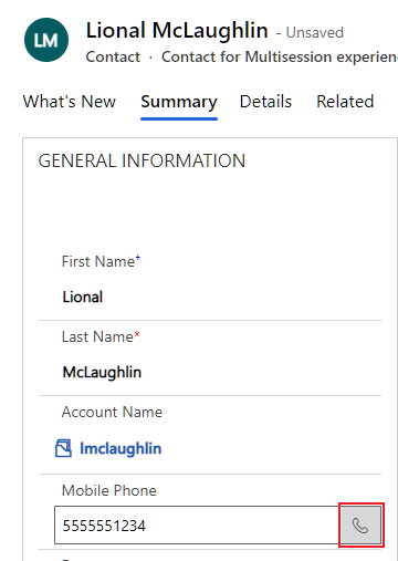 InteractionSync adds another useful feature with its integration into Dynamics 365 by letting you click-to-dial a contact's telephone number from within a displayed entity. When you see a telephone number, click the Click-to-Dial icon located beside it to automatically call the contact using Webex Agent Desktop.