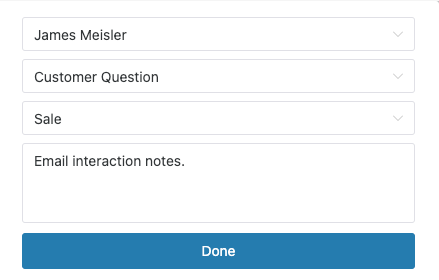 When the email interaction is completed, the wrap-up UI displays. Complete the form and select Done.