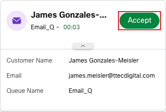 Upon receiving an interaction, some contact centers may be configured to show a pop up allowing you to accept . When this occurs, select the Accept button to accept the interaction.